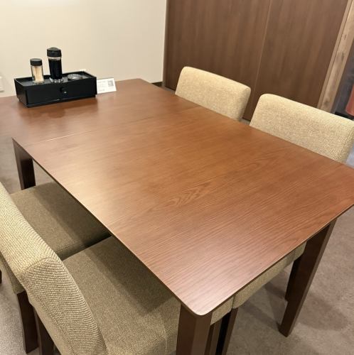 4名様掛けのテーブル席を1卓ご用意。お一人様でも、友人や会社の仲間とでも、気兼ねなくゆったりとした時間を過ごせる空間です。落ち着いた雰囲気の中で、普段使いや気軽な二次会にもピッタリ。程よい距離感で会話を楽しみながら、料理とお酒をゆっくり味わえます。